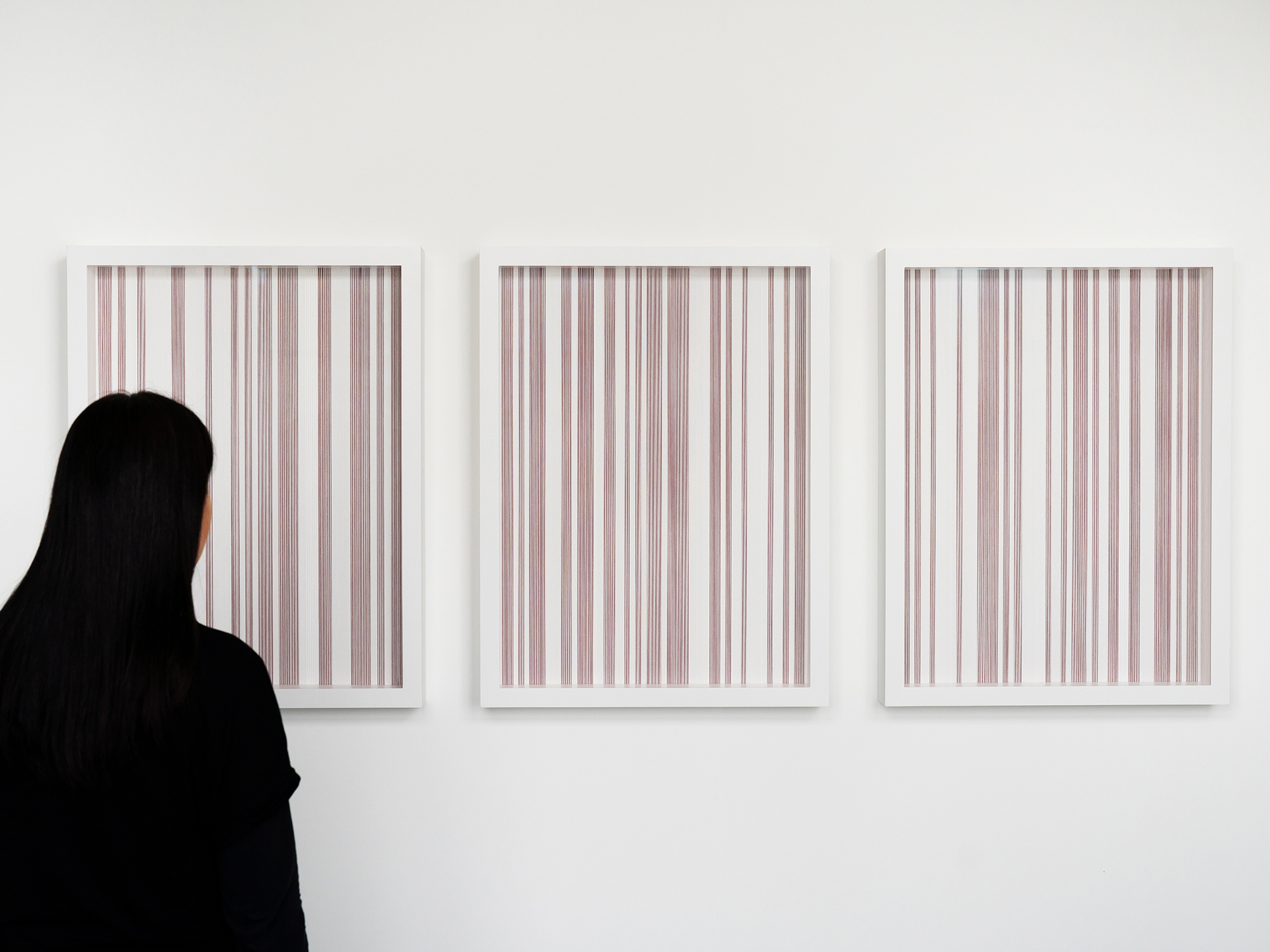 LINES AND SPACE 012024Threads on paper, wooden frame with museum glas36,8 x 26,8 cm Photo: Ralf Gellert